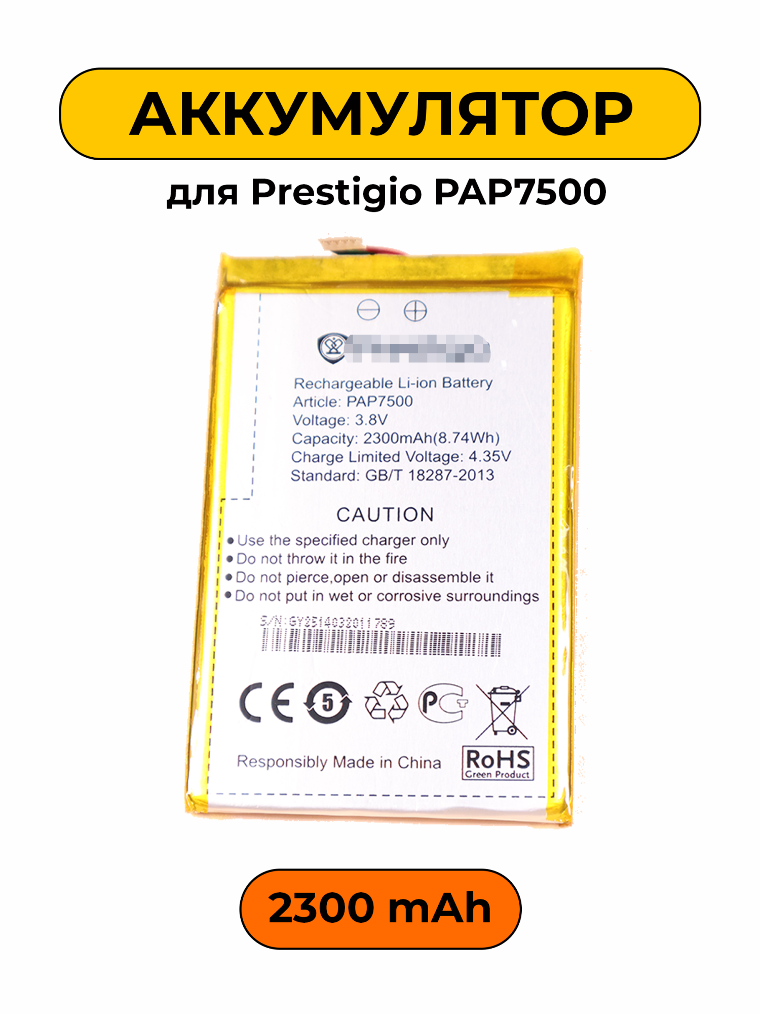—Аккумулятор для Prestigio PAP7500 2300 мАч батарея